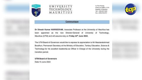 Main picture Université de Technologie de Maurice : Le Dr Dinesh Hurreeram devient le nouveau directeur général voir plus