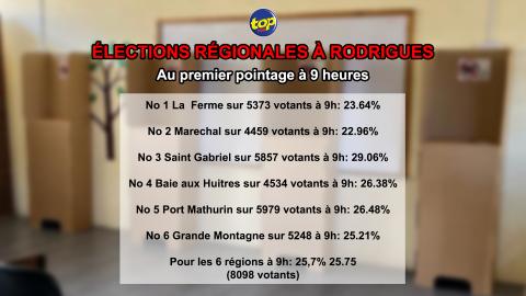 Main picture Elections Régionales à Rodrigues : Les 6 régions enregistrent un taux de participation de 25,75% au premier pointage sur 8098 votants voir plus