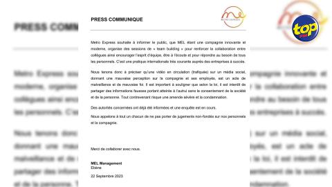 Main picture Vidéo en circulation d’employés en train de chanter et danser en présence du CEO : Metro Express Limited parle d’une vidéo truquée et soutient qu’il s’agissait d’un exercice de Team Building voir plus