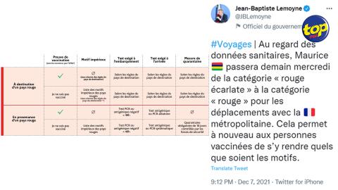 Main picture Variant Omicron : la France place Maurice en zone rouge écarlate… un groupe pour les pays les plus à risque… les vols reprendront le samedi 4 décembre ! voir plus