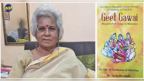 Main picture “Geet Gawai – An Ode to Geetharines of Mauritius” : Un livre de Sarita Boodhoo qui rend hommage à la langue Bhojpuri à travers du Geet Gawai voir plus