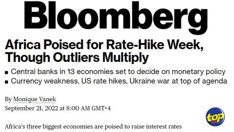 Main picture Pour contrer l’inflation : plusieurs banques centrales africaines, y compris à Maurice, devraient relever leur taux directeur, selon Bloomberg voir plus