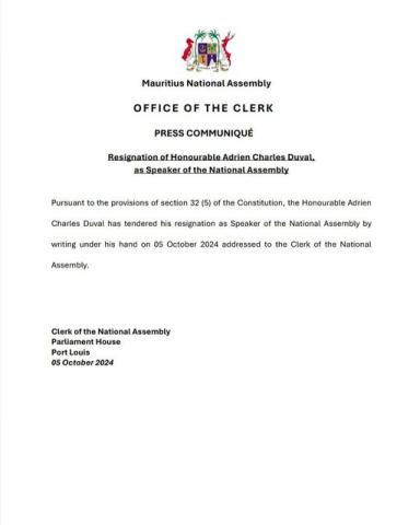 Parlement Démission Adrien Duval Speaker Assemblée Nationale
