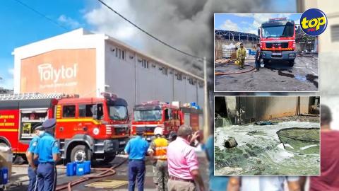 Main picture Dans l’entrepôt de Polytol Paints à Riche Terre : L’incendie contrôlé, les pompiers à pied d’œuvre pour retirer les débris voir plus