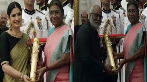 Main picture Raveena Tandon, MM Keeravaani receive Padma Shri from President Draupadi Murmu voir plus