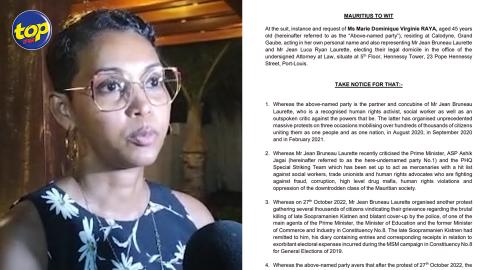 Main picture Dans une mise en demeure : Dominique Raya réclame Rs 20 millions à l’ASP Ashik Jagai et l’inspectrice Narainen voir plus