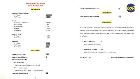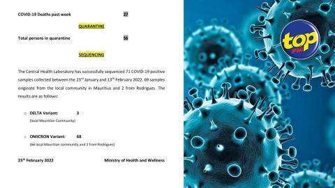 Main picture Séquençage : 21 cas importés d’Omicron détectés… le variant Delta toujours dominant à Maurice voir plus
