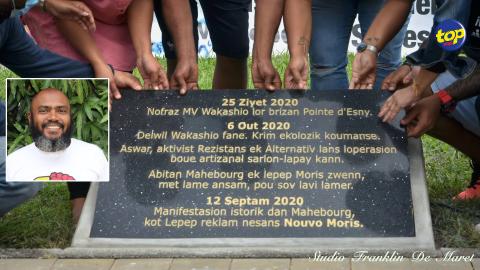 Main picture Rezistans ek Alternativ ordonné par le Conseil de district de Grand Port de démolir la stèle érigée à Pointe d’Esny : « C’est une tentative d’effacer la contribution de la population », lance Stephan Gua voir plus