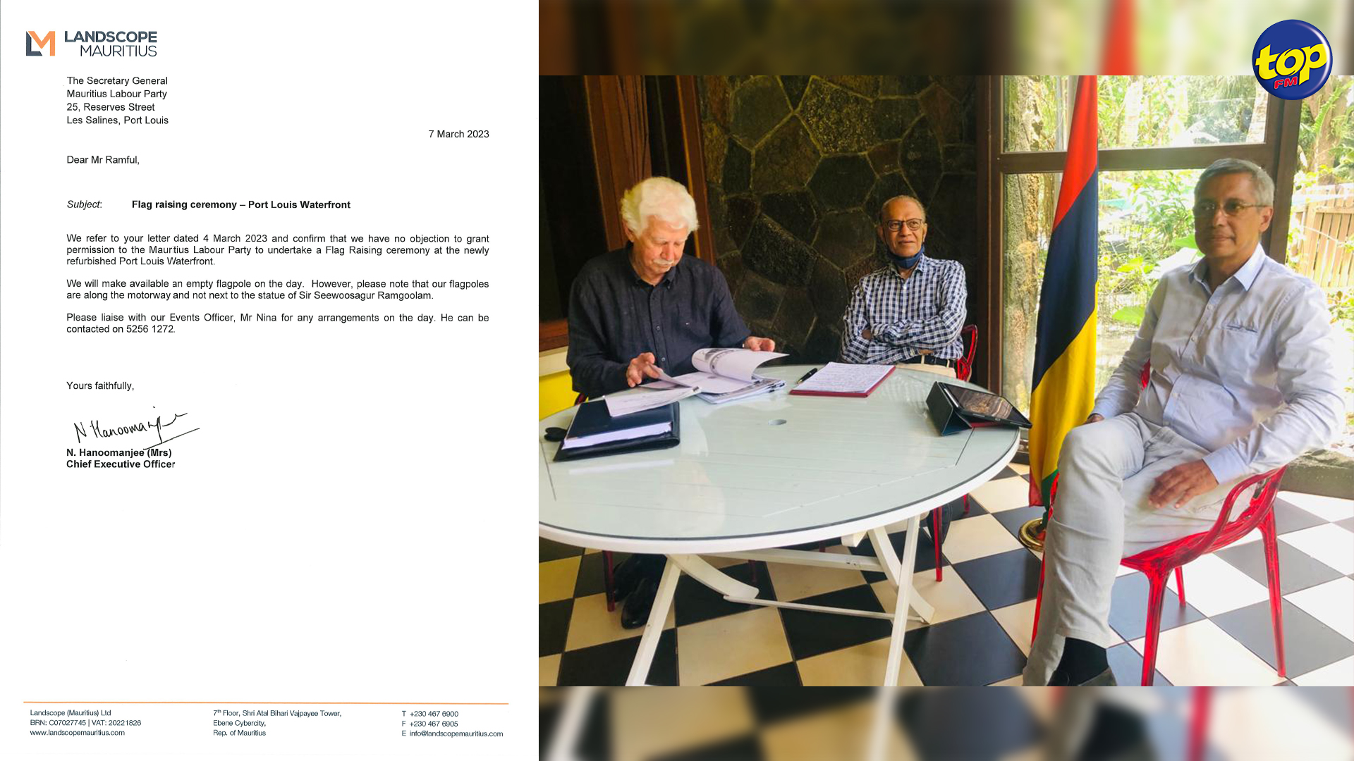 En effet dans sa réponse adressée au secrétaire général du PTr, Ritish Ramful, la CEO de Landscope Mauritius, Naila Hanoomanjee, affirme n’avoir aucune objection à ce que le PTr organise une cérémonie de levée du drapeau le dimanche 12 mars à Port-Louis.
