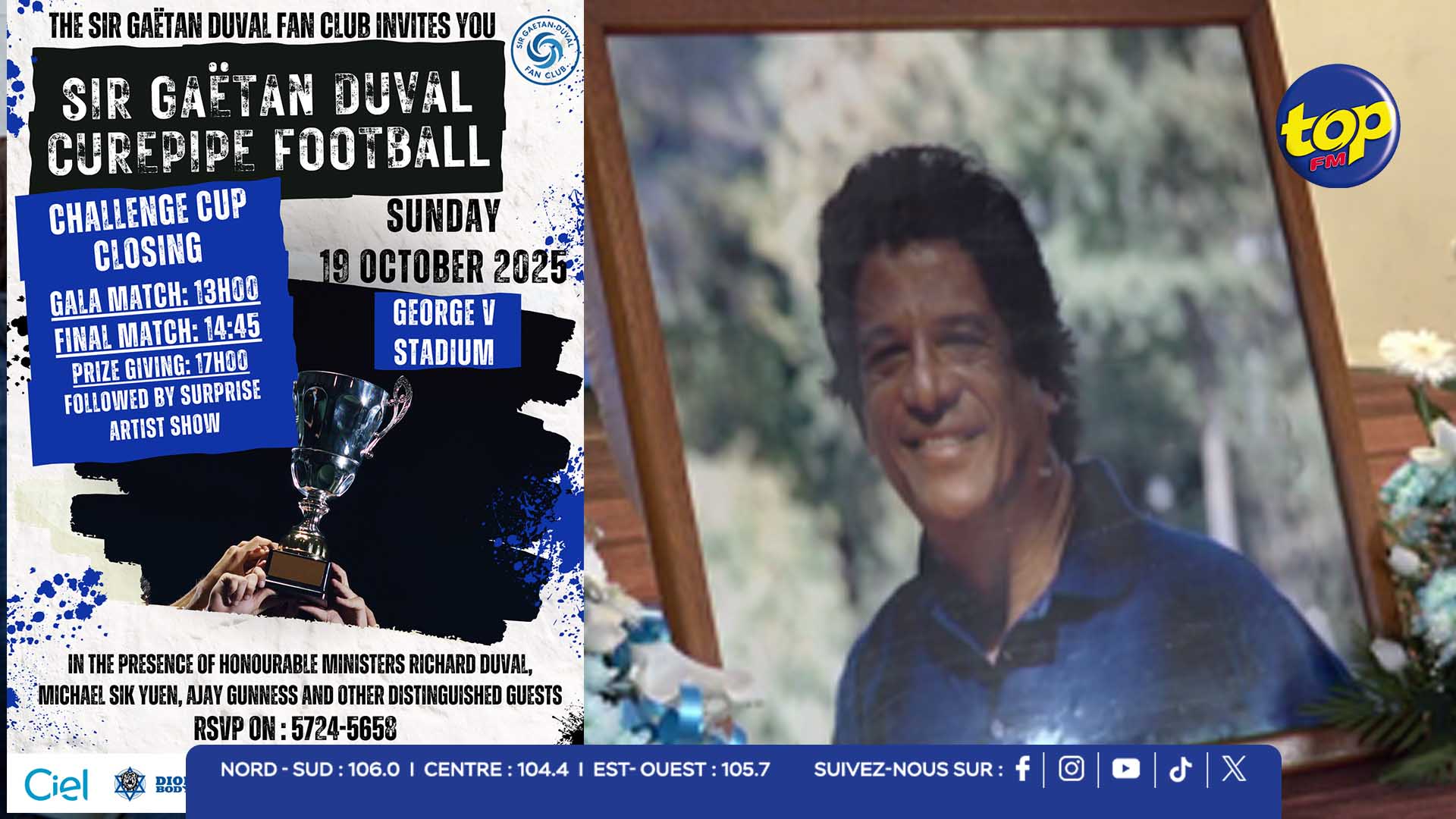 Sous l’initiative du ministre du Tourisme, Richard Duval, le Sir Gaëtan Duval Fans Club de Curepipe a organisé un tournoi de football pour marquer l’anniversaire de naissance de Sir Gaëtan Duval.