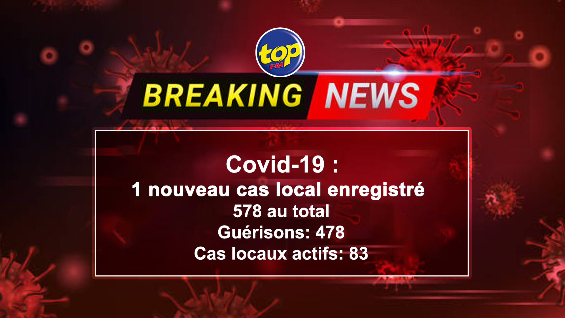 Le nombre de cas actifs au niveau local est donc de 83.