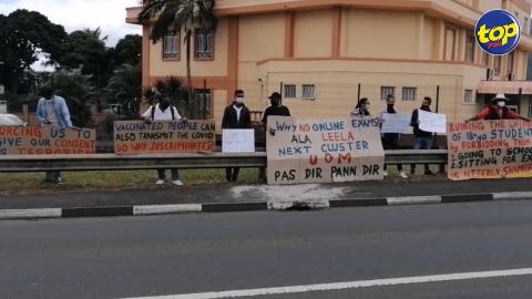 Main picture Manifestation contre la vaccination obligatoire : Des étudiants de l’Université de Maurice réclament la tenue des examens en ligne voir plus