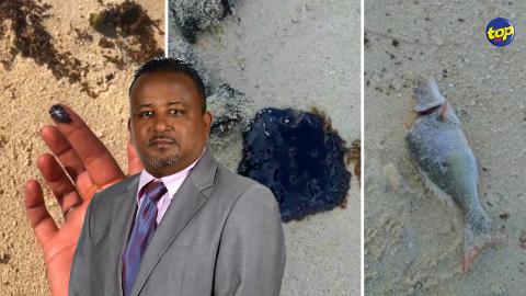 Main picture Des traces d’huile et des poissons morts retrouvés sur la plage de Pointe d’Esny ce matin : « Cela va faire une année que nous attendons les résultats des analyses », affirme Tony Apollon voir plus