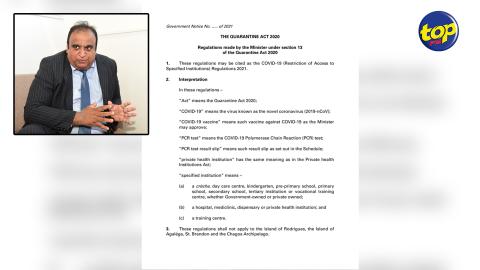Main picture Nouveaux règlements sous la Quarantine Act: « Les travailleurs qui, pour des raisons personnelles ne veulent se faire vacciner, risquent de perdre leur emploi », déplore Rajen Narsinghen voir plus