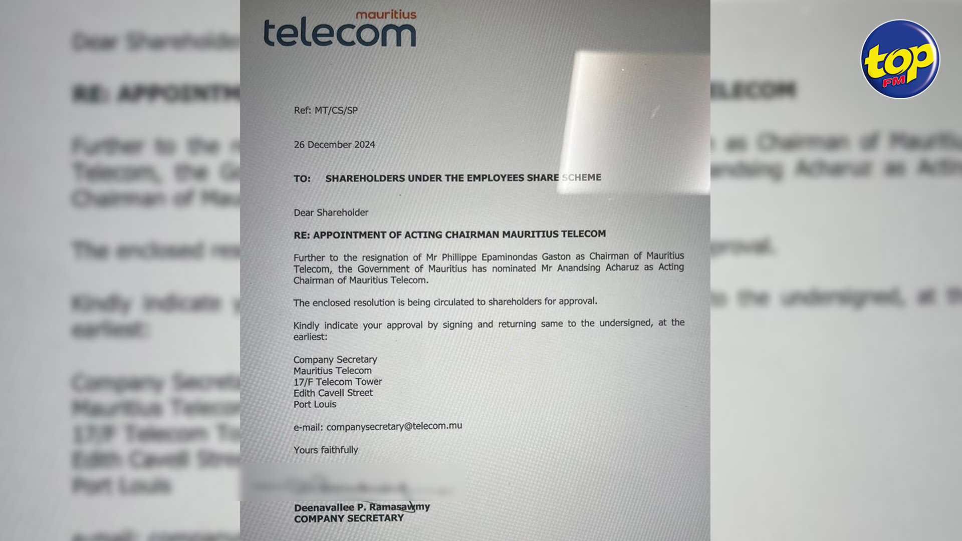 Par ailleurs, le secrétaire de la compagnie de télécommunications, Deenavallee P. Ramasamy, a appelé les actionnaires à approuver cette nomination, dans les plus brefs délais.