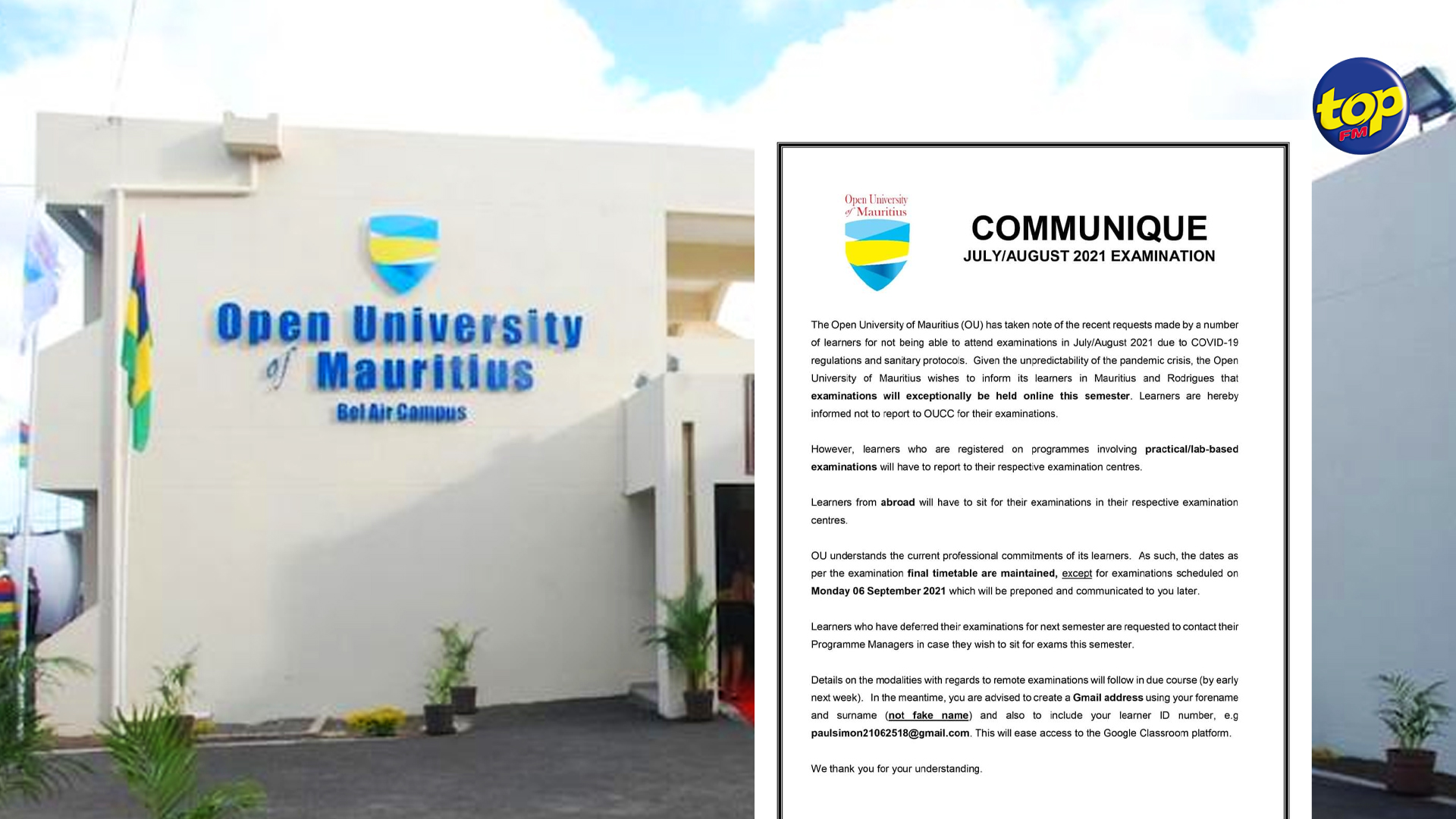 C’est ce qui ressort d’un communiqué émis par l’Open University of Mauritius. Suite à plusieurs requêtes des étudiants, l’établissement a décidé de tenir les examens de juillet/août 2021 en ligne ce semestre. C’est une décision exceptionnelle.