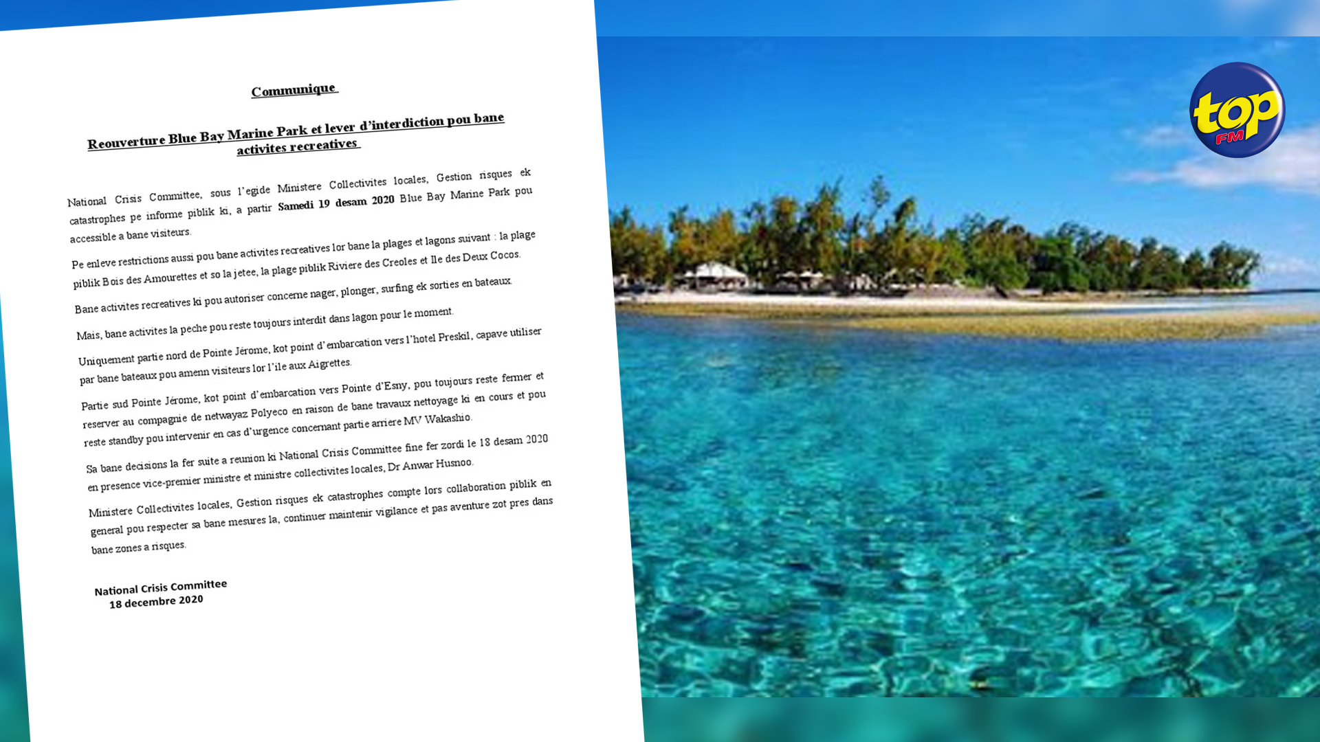 Et les activites recréatives reprennent normalement sur les plages publiques de Rivière des Créoles et l’Ile des Deux Cocos.