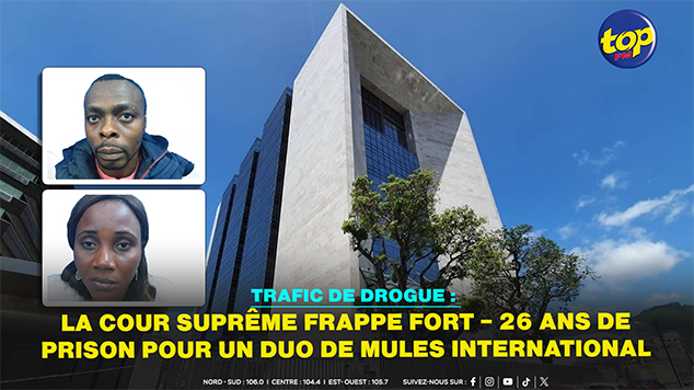 La lutte contre le trafic de drogue, priorité nationale, vient d’être réaffirmée avec force par la Cour suprême. Dans un jugement rendu le 19 novembre 2025, le juge Mehdi Manrakhan a condamné les ressortissants guinéens Fode Camara et Aissatou Lamarana Balde à 26 ans de servitude pénale chacun, assortis d’une amende de Rs 50 000 sous chaque chef d’accusation, pour importation d’héroïne avec circonstances de trafic.